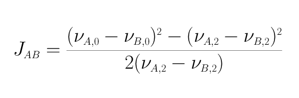 It can be derived from the basic equations3 that describe the frequency positions in an AB spin system.